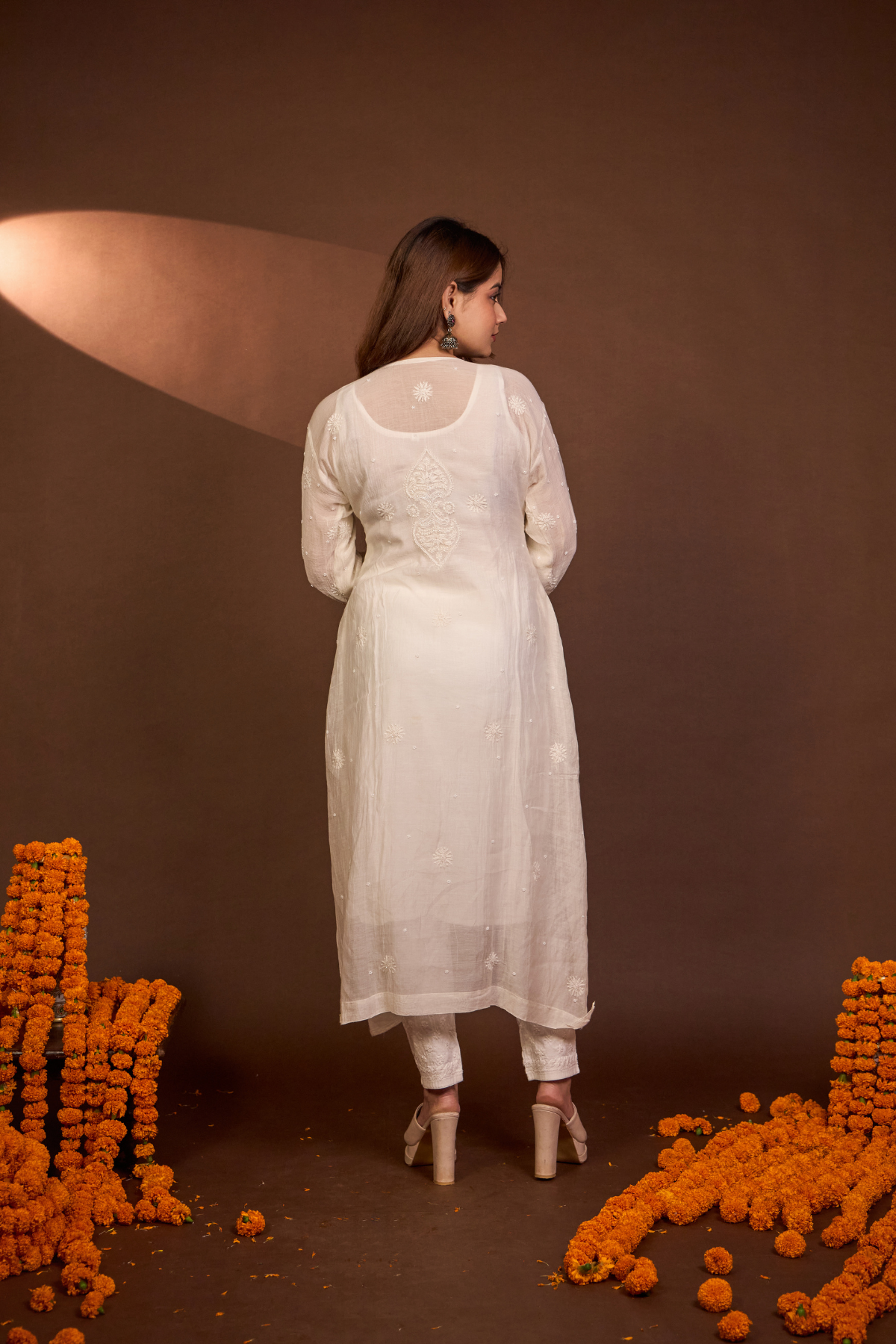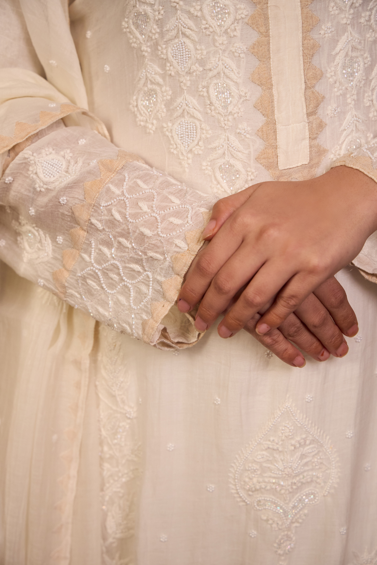 Chikankari Stitches Used - Bakhiya, Phanda and Ghass Patti, pearl and Cutdana beads.