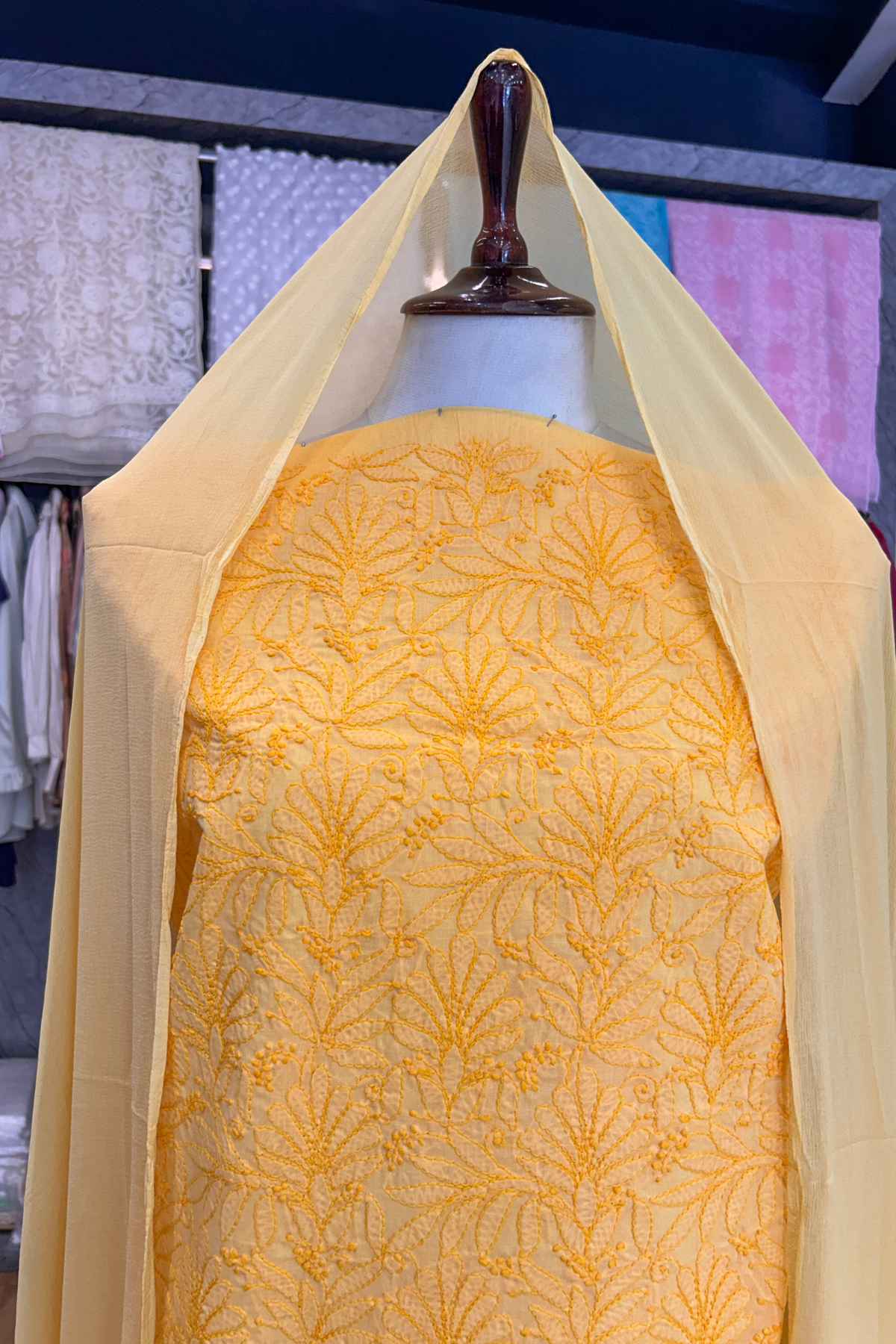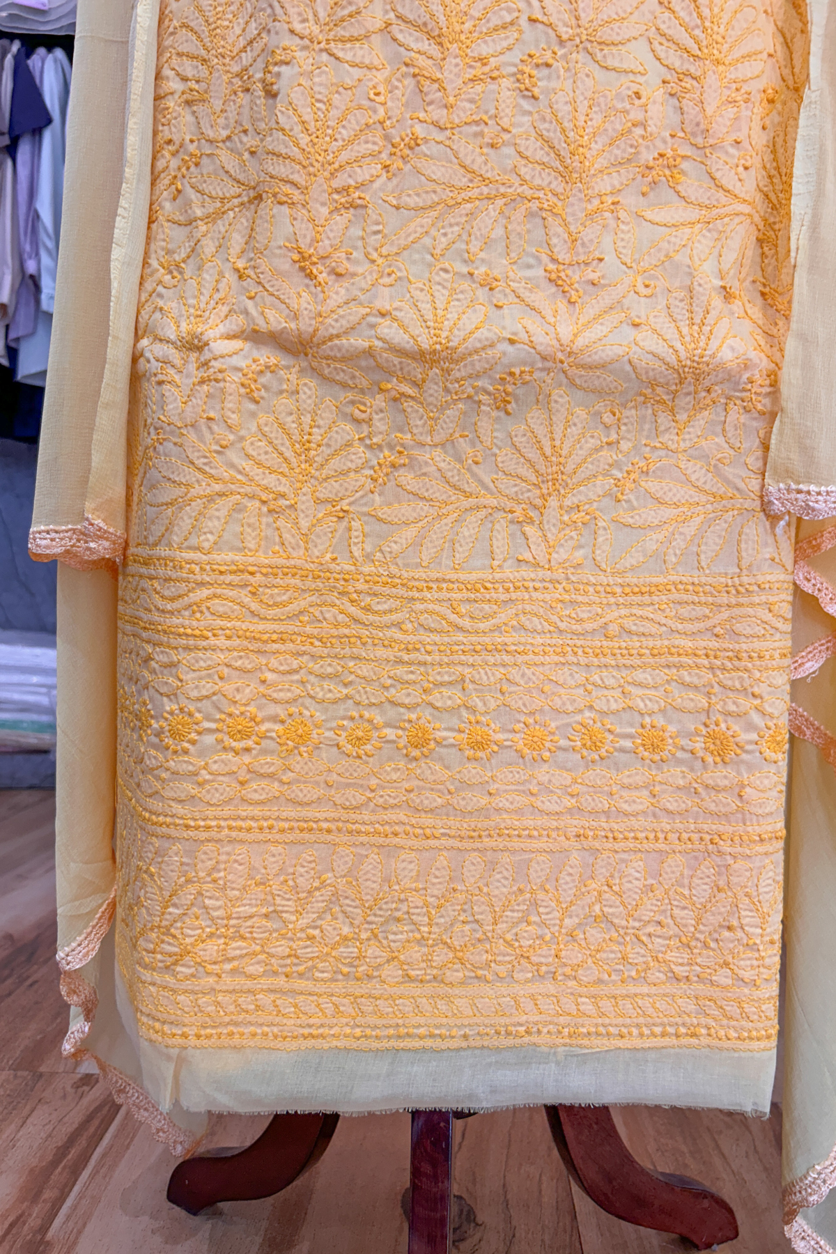 Please note that due to the handmade nature of our products, there might be slight variations in the crafting and embroidery compared to the showcased images. The visibility of threads on the back of the materials is a symbol of authentic handmade chikankari. These minor differences are inherent to the human involvement in the crafting process, and they contribute to the beauty and uniqueness of each piece.