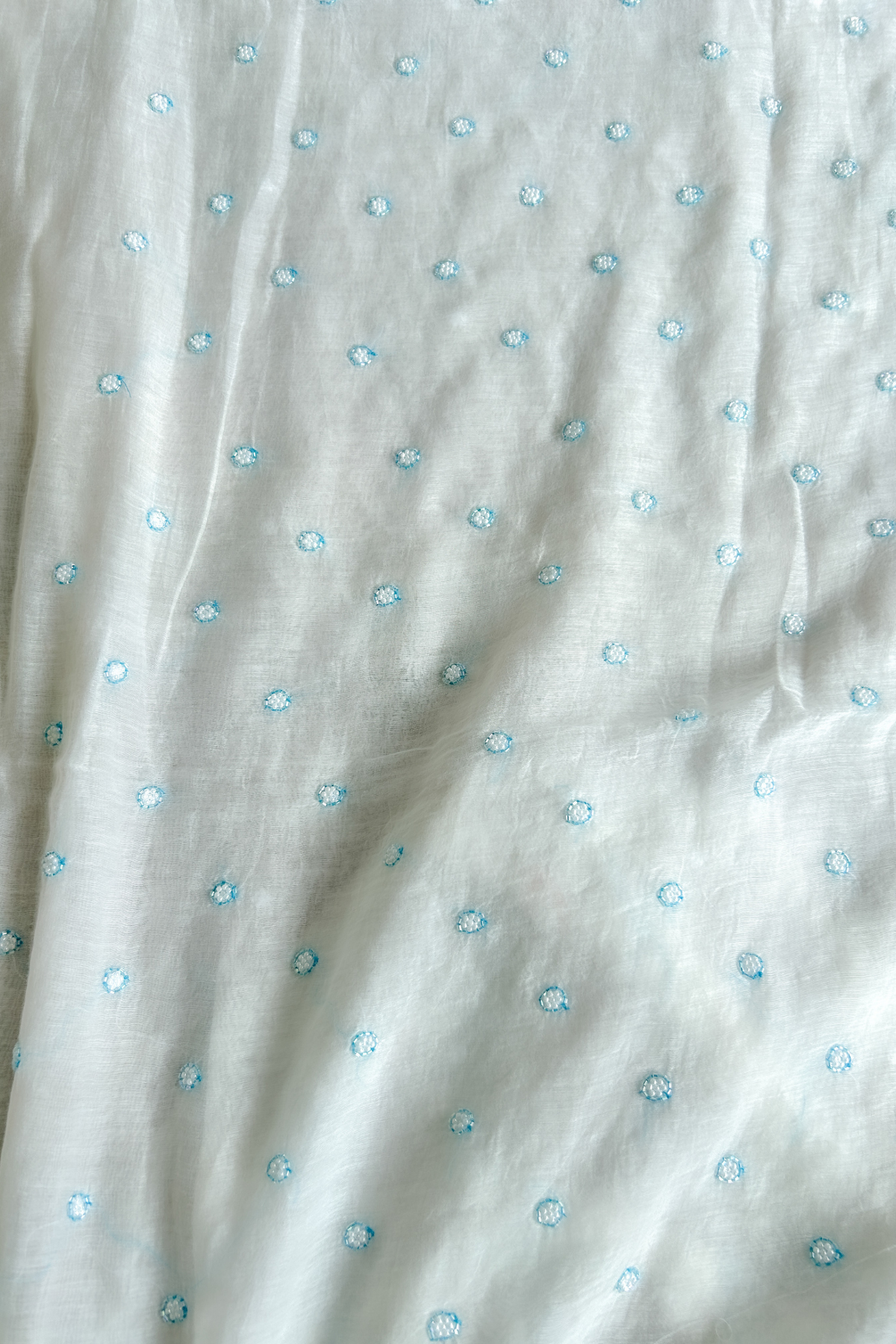 Fabric – Mul Chanderi in Green colour with contrast white thread embroidery.