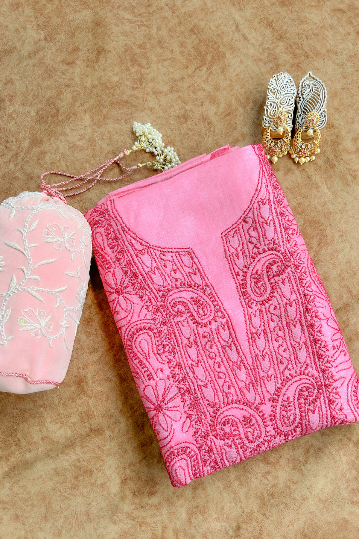 Please note that due to the handmade nature of our products, there might be slight variations in the crafting and embroidery compared to the showcased images. The visibility of threads on the back of the materials is a symbol of authentic handmade chikankari. These minor differences are inherent to the human involvement in the crafting process, and they contribute to the beauty and uniqueness of each piece.
