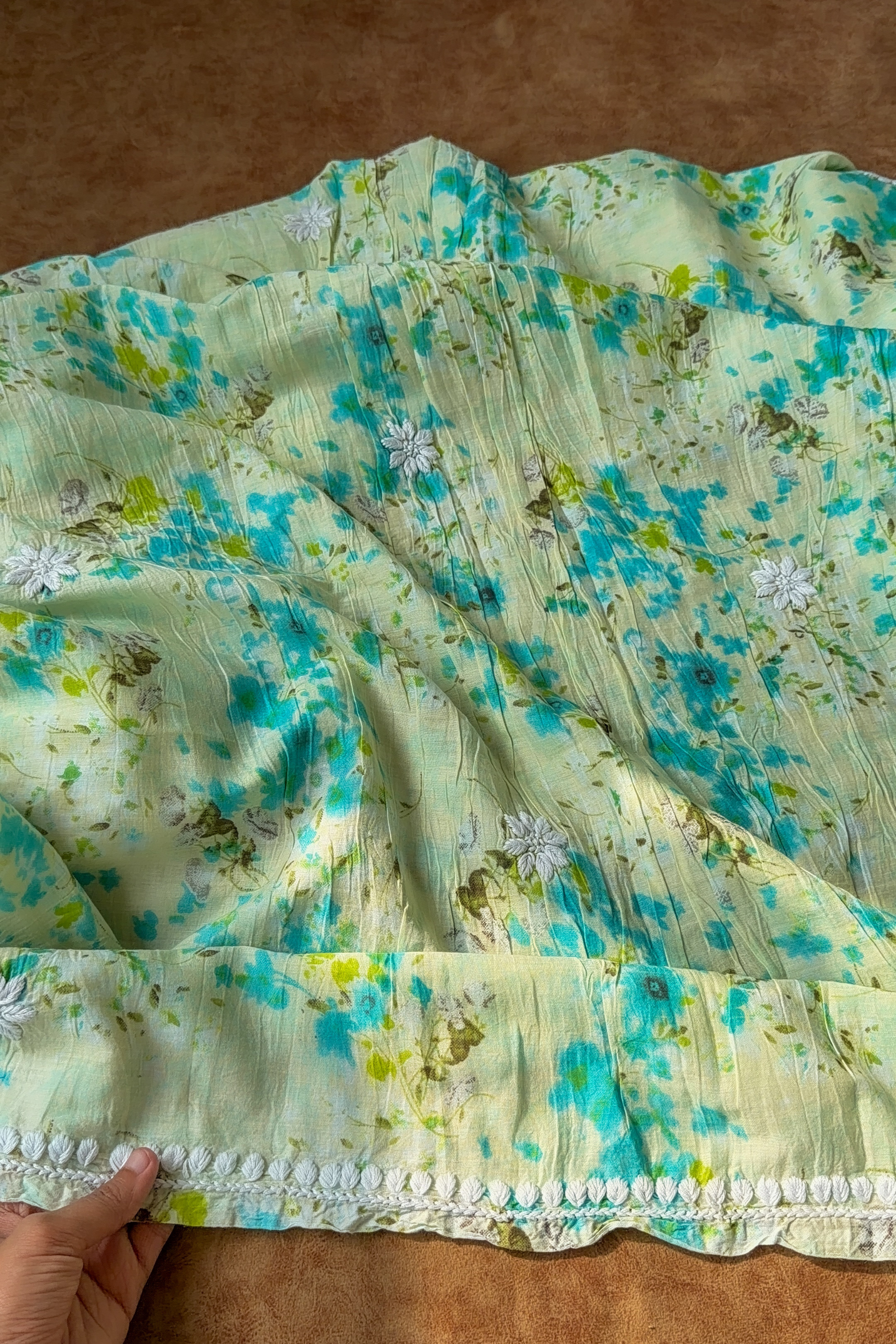 Please note that due to the handmade nature of our products, there might be slight variations in the crafting and embroidery compared to the showcased images. The visibility of threads on the back of the materials is a symbol of authentic handmade chikankari. These minor differences are inherent to the human involvement in the crafting process, and they contribute to the beauty and uniqueness of each piece.
