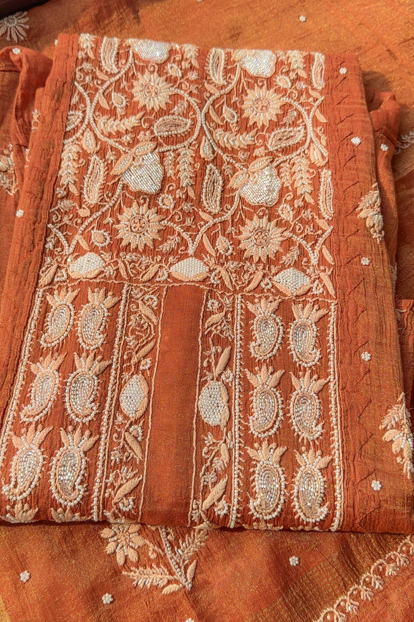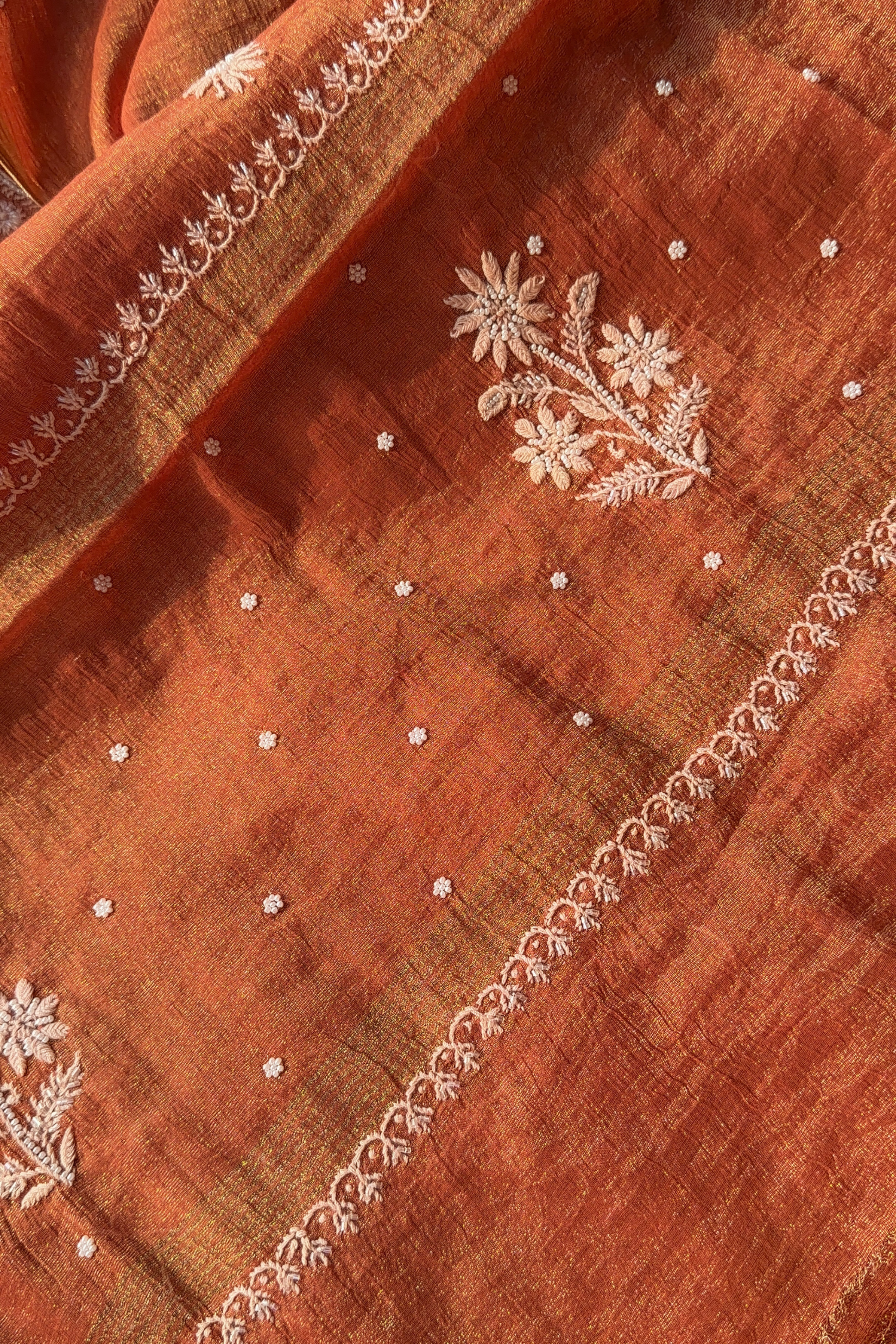 Chikankari Stitches Used - Bakhiya, Phanda and Ghass Patti, pearl and Cutdana beads.