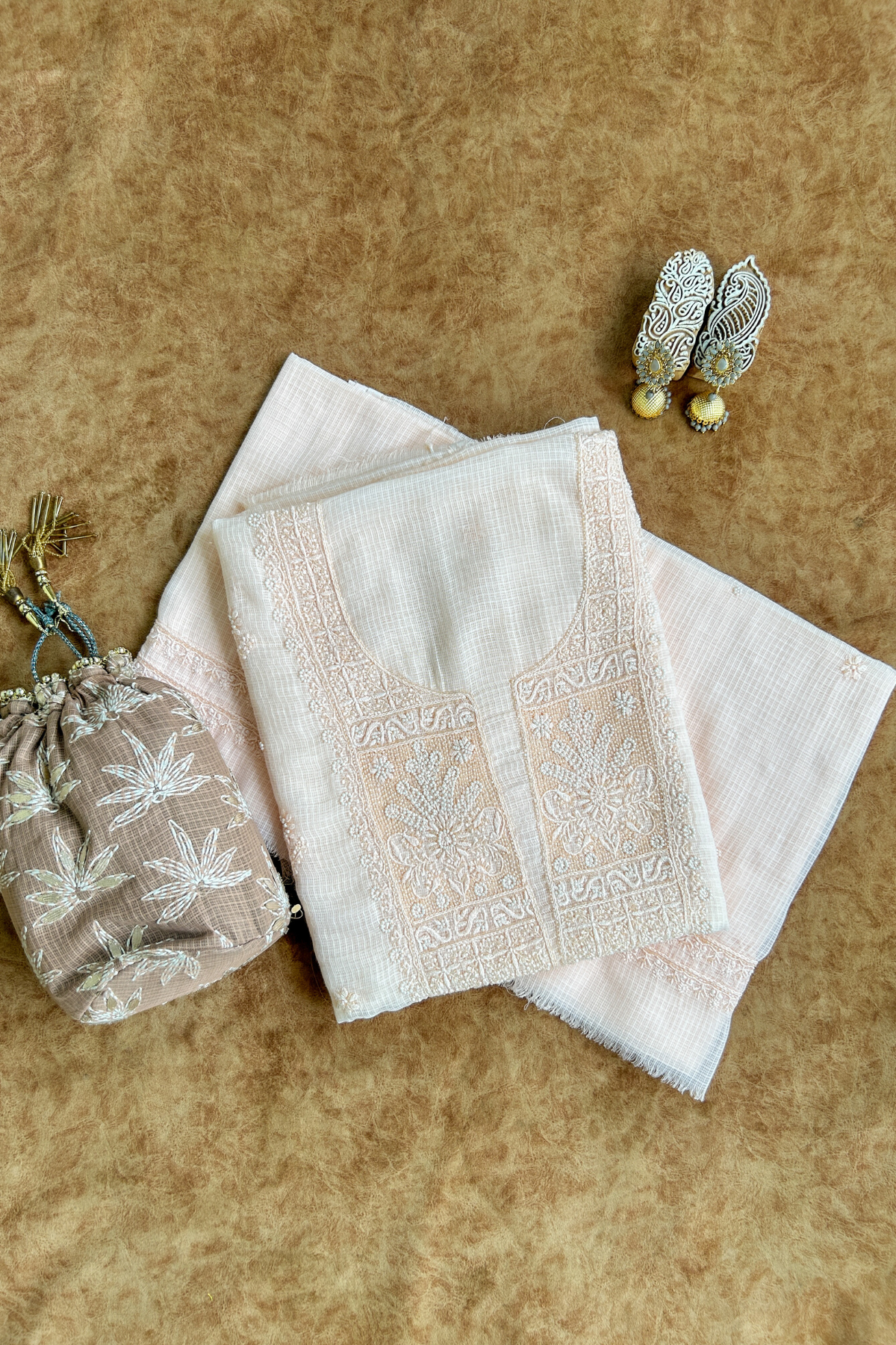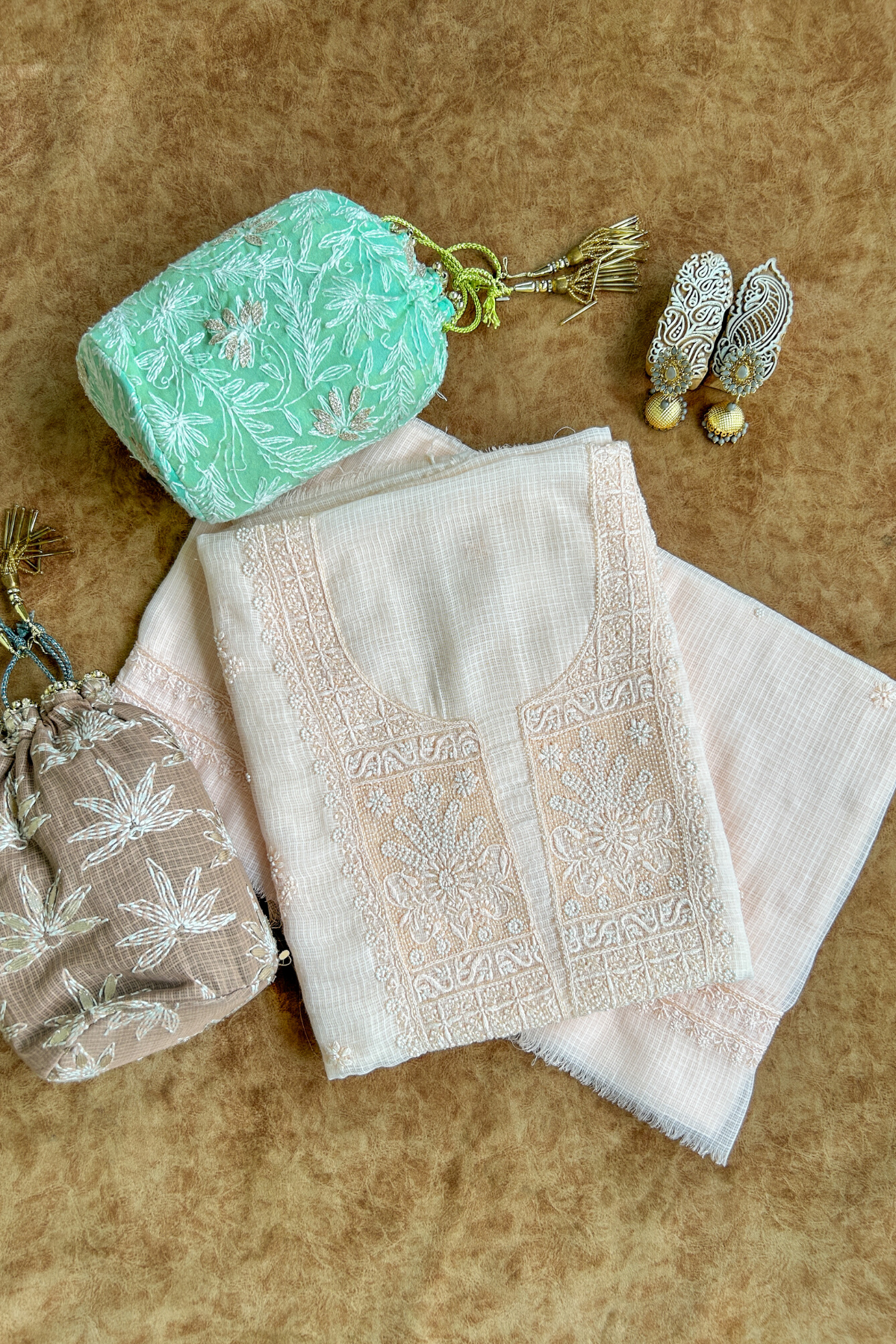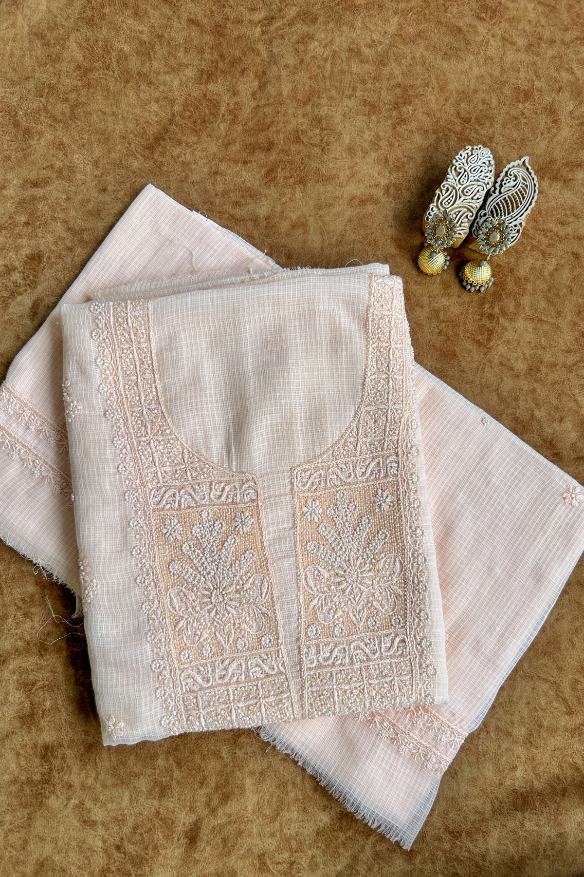 Please note that due to the handmade nature of our products, there might be slight variations in the crafting and embroidery compared to the showcased images. The visibility of threads on the back of the materials is a symbol of authentic handmade chikankari. These minor differences are inherent to the human involvement in the crafting process, and they contribute to the beauty and uniqueness of each piece.