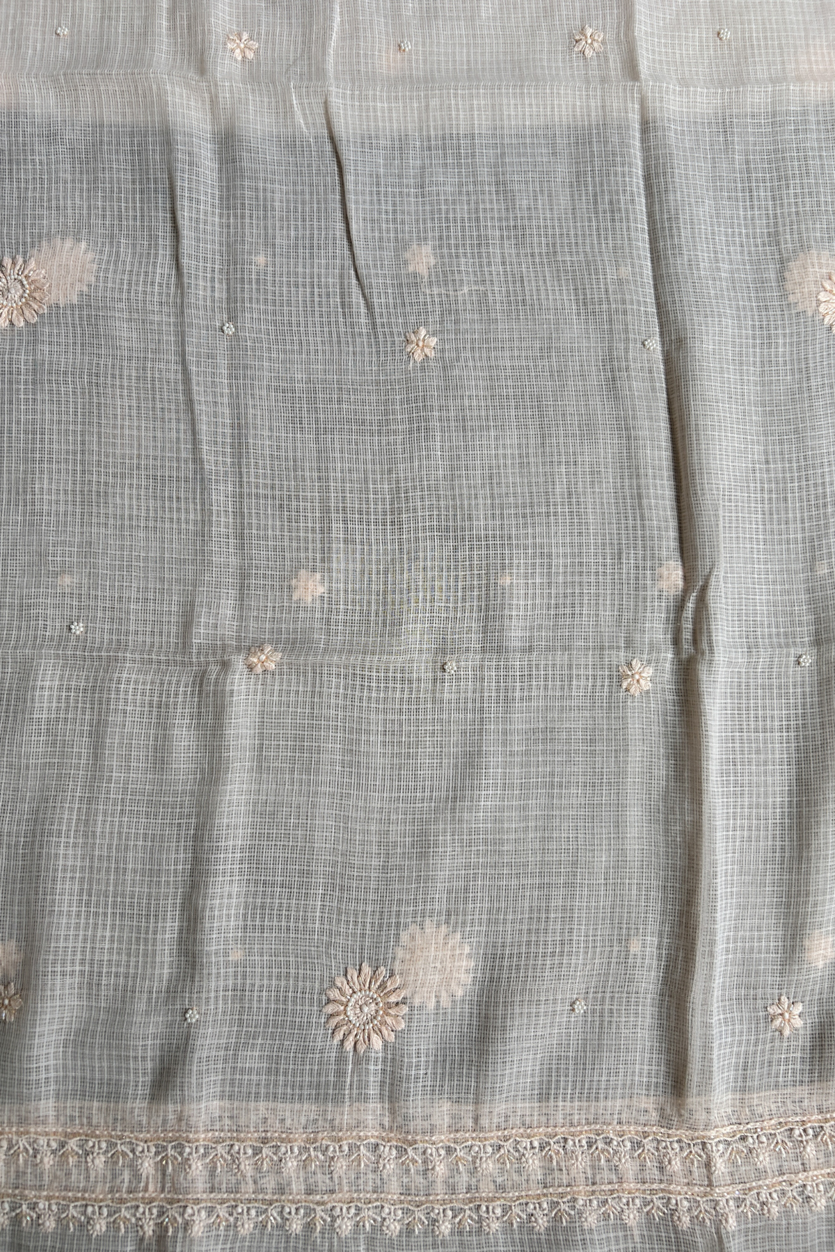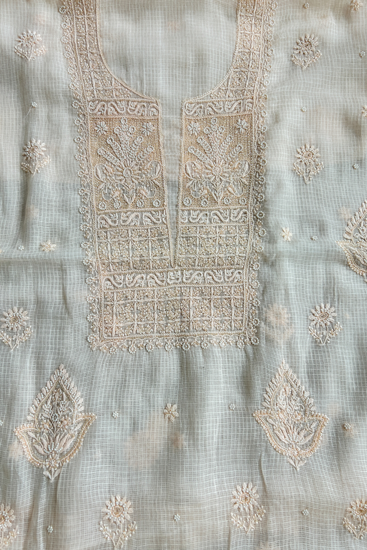 Chikankari Stitches Used - Bakhiya, Phanda, Murri, and Ghass Patti, pearl and Cutdana beads.