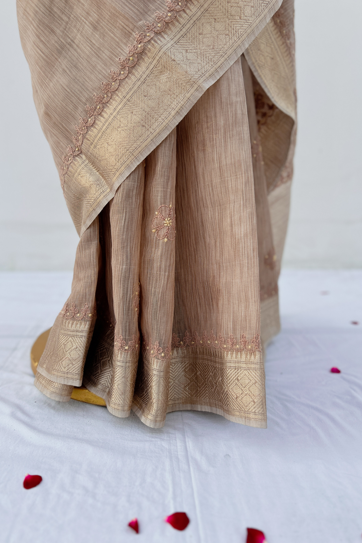 The saree has Banarasi border in it and has Tissue fabric shine giving it a good Party Wear Look for this season.