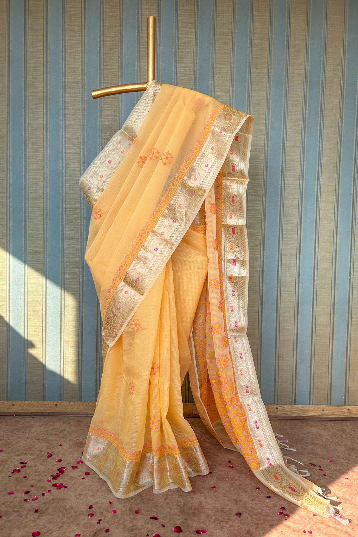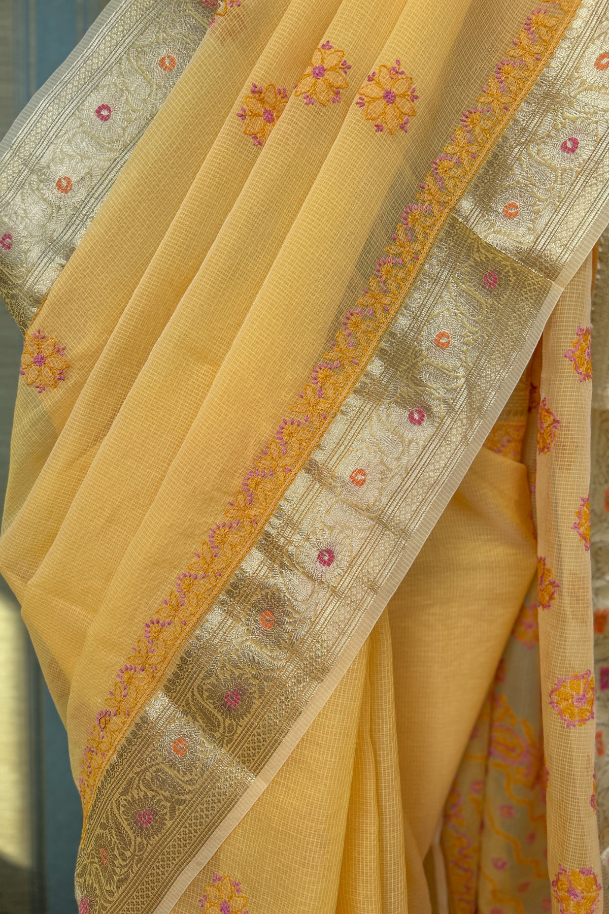The saree has Banarasi border in it on Kota Silk Fabric.